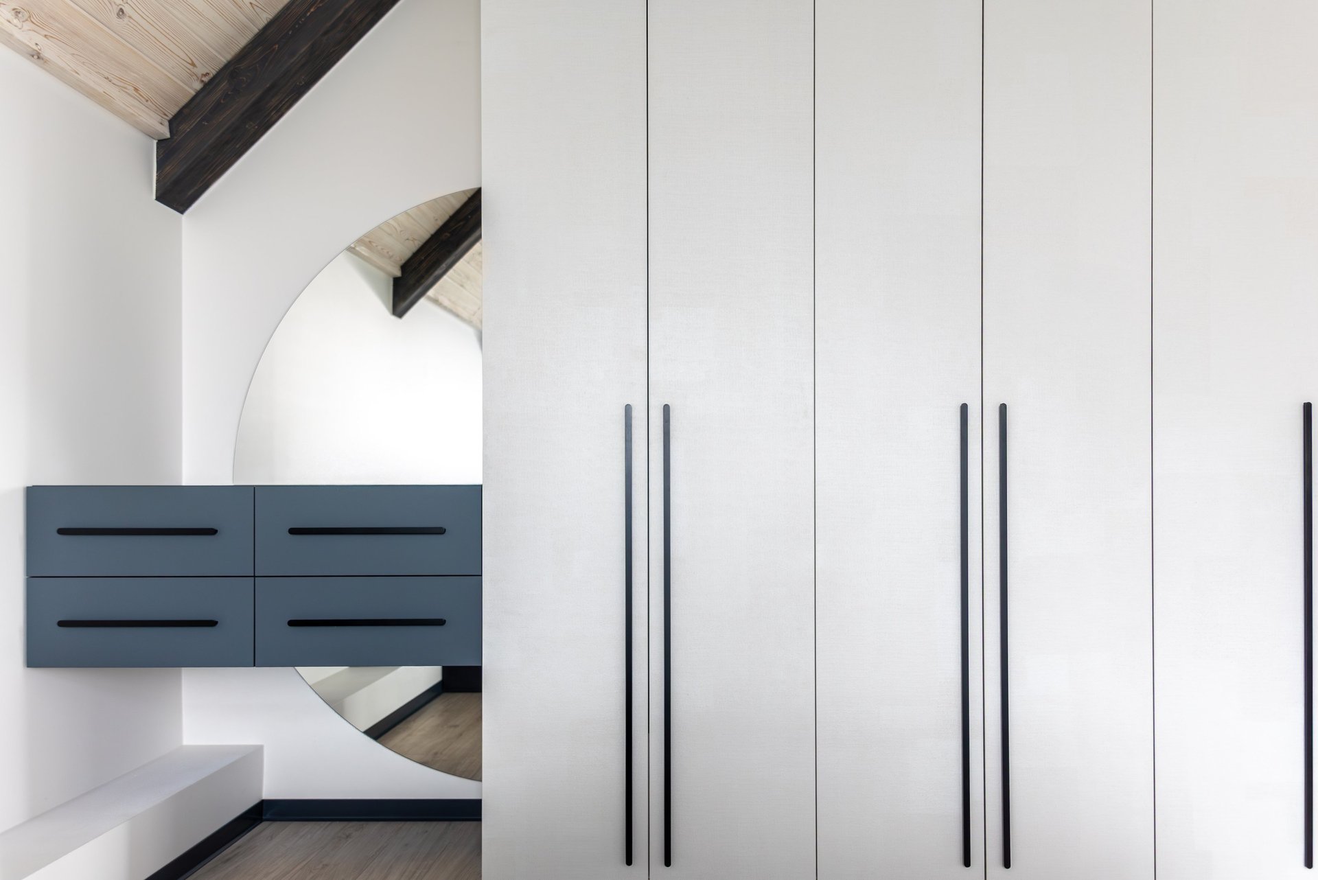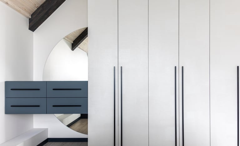 Floor-to-ceiling wardrobes with concealed handles